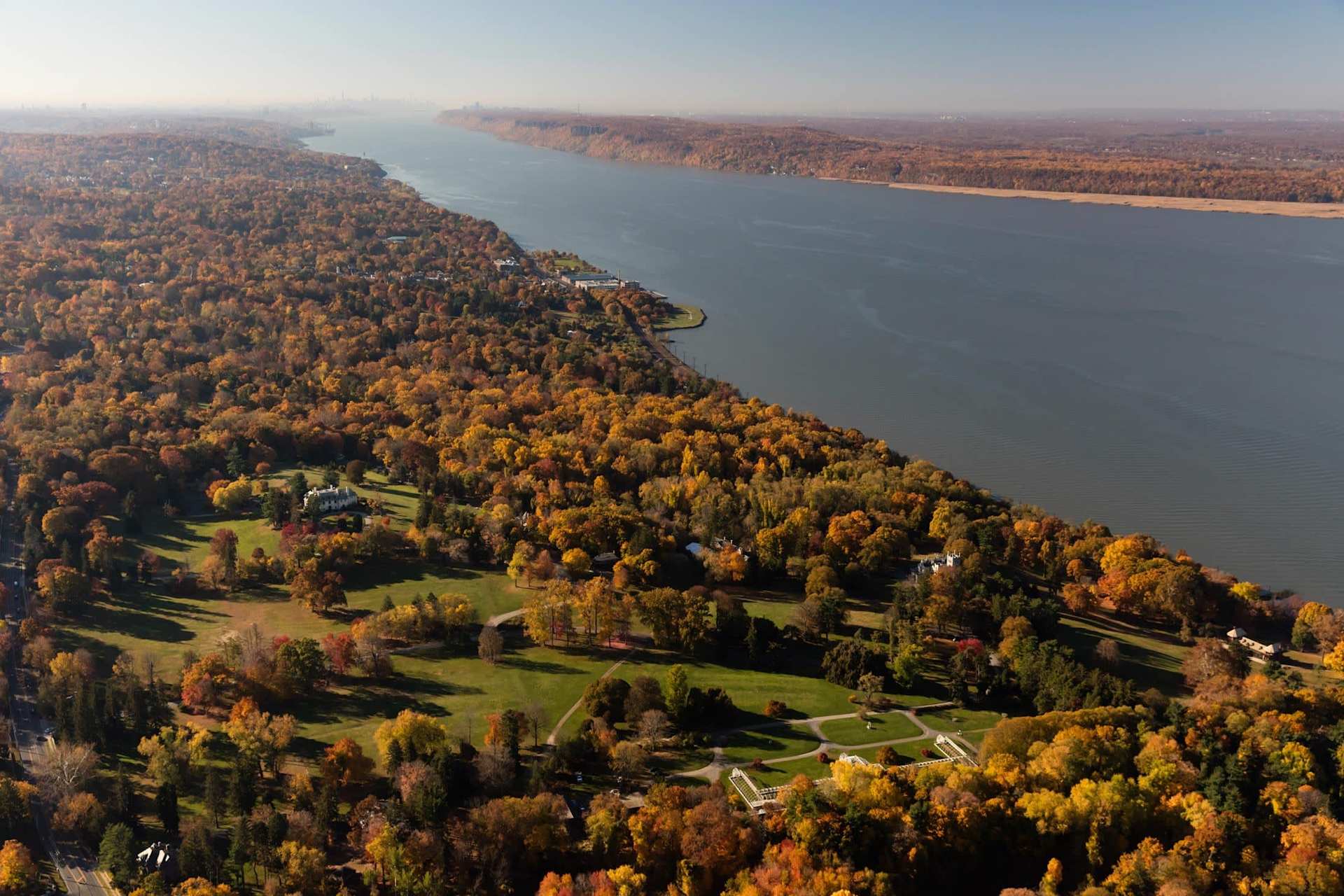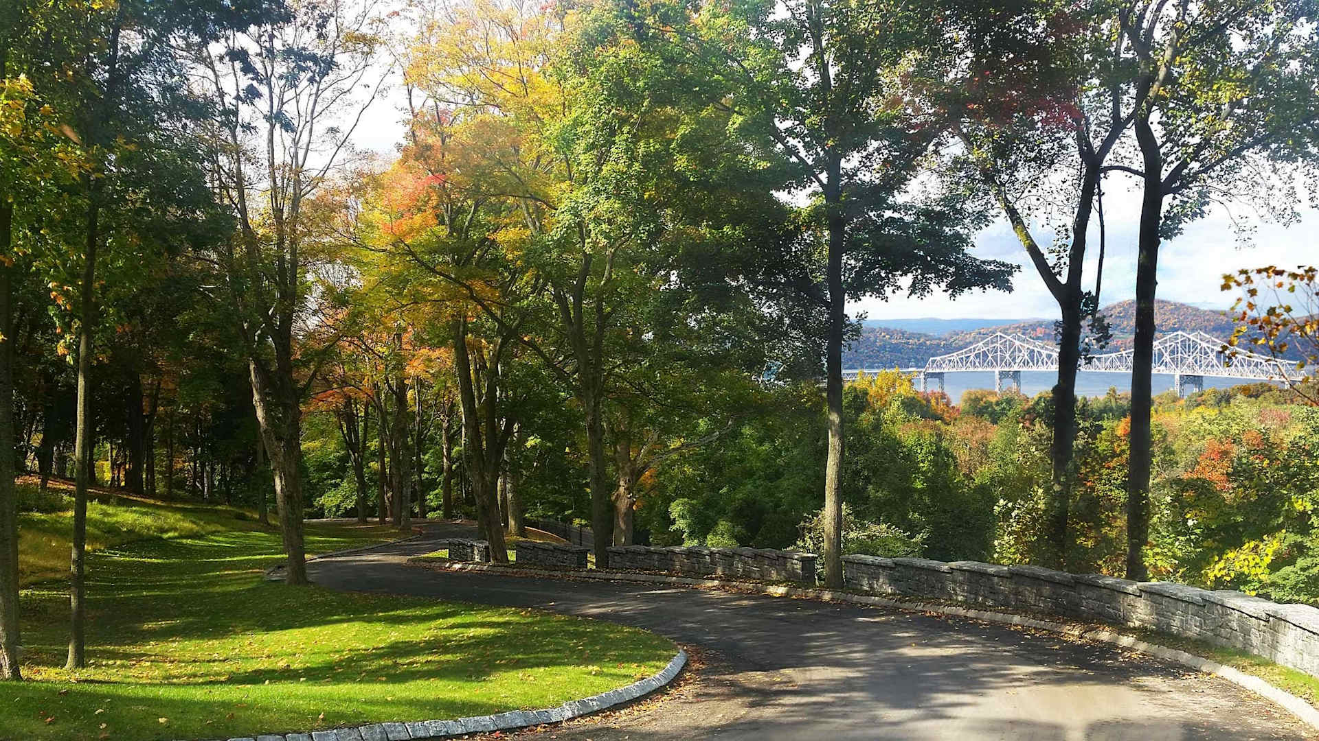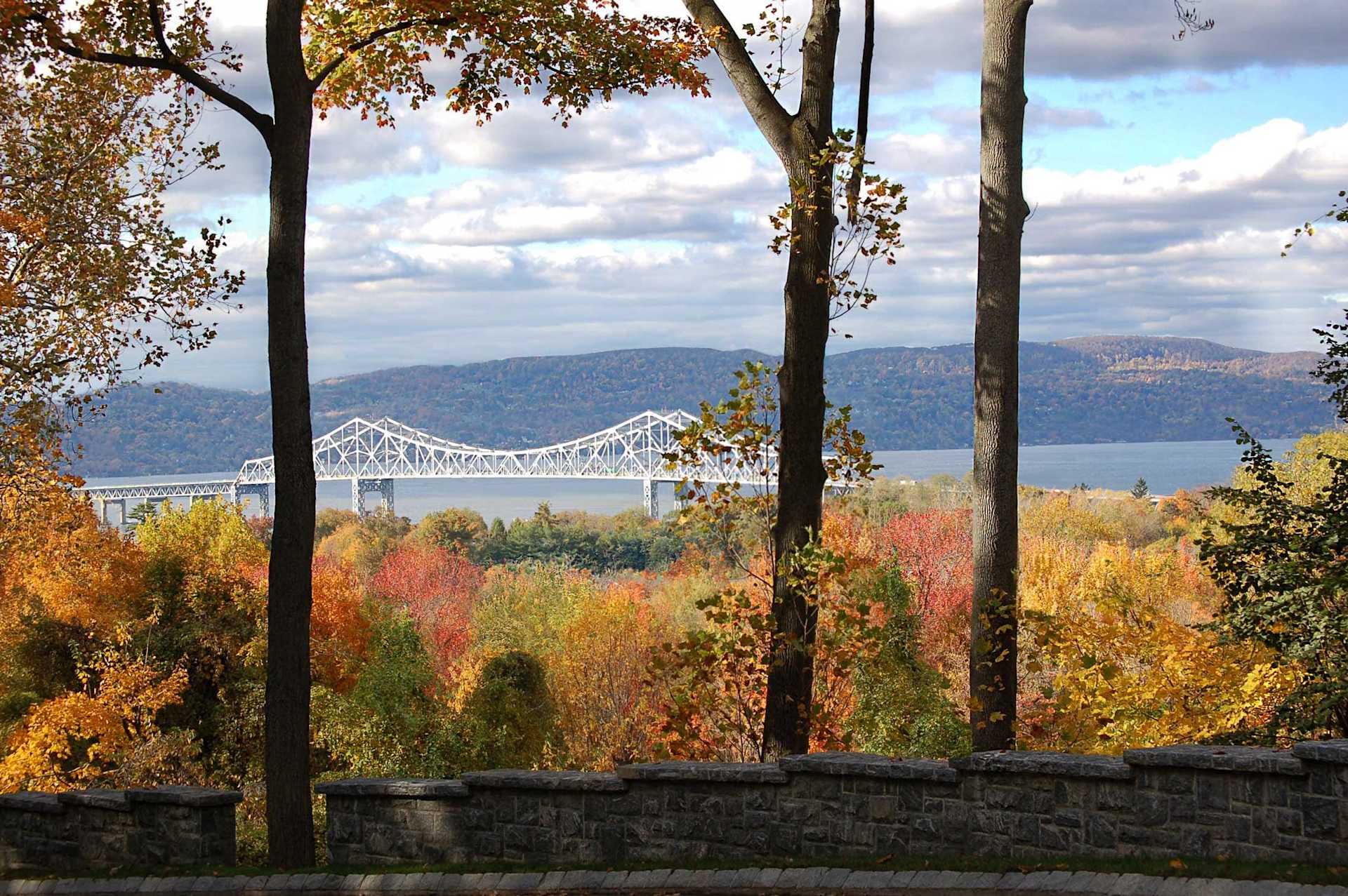 The winding tree-lined drive climbs the forested hillside, passing a restored allee of century-old specimen trees. The terraced hillside provides romantic outlooks of the Hudson River, Lyndhurst Castle, The Palisades and Pocantico Hills, and the Tappan Zee Bridge. Greystone on Hudson's iconic location borders two thousand acres of protected nature preserves encompassing hundreds of miles of hiking, biking, and riding trails, following the river all the way down to New York City.